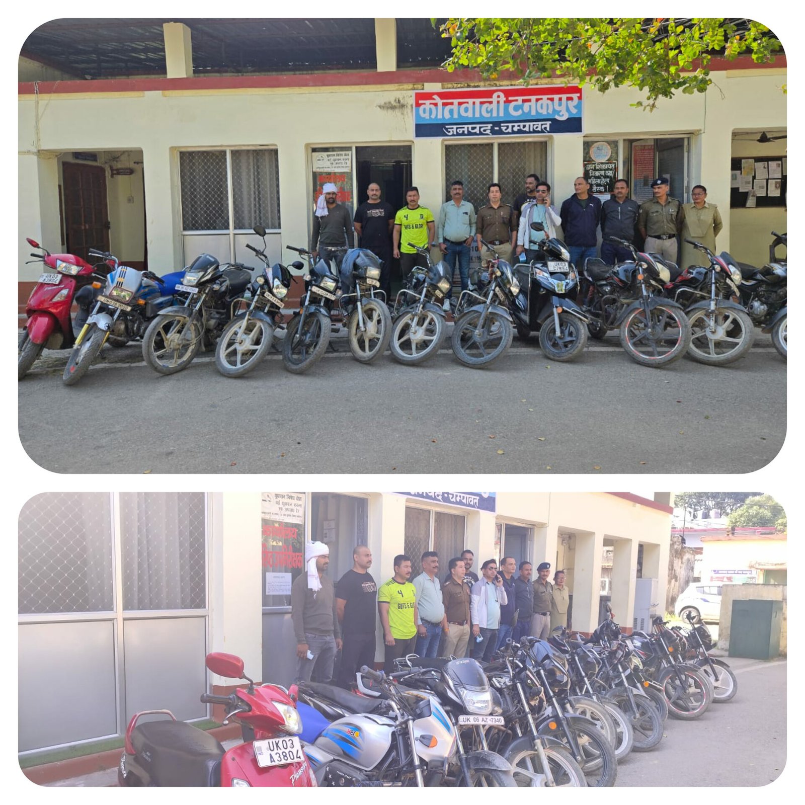 चंपावत टनकपुर पुलिस की ताबड़तोड़ कार्रवाई दो पहिया वाहनों को किया सीज।