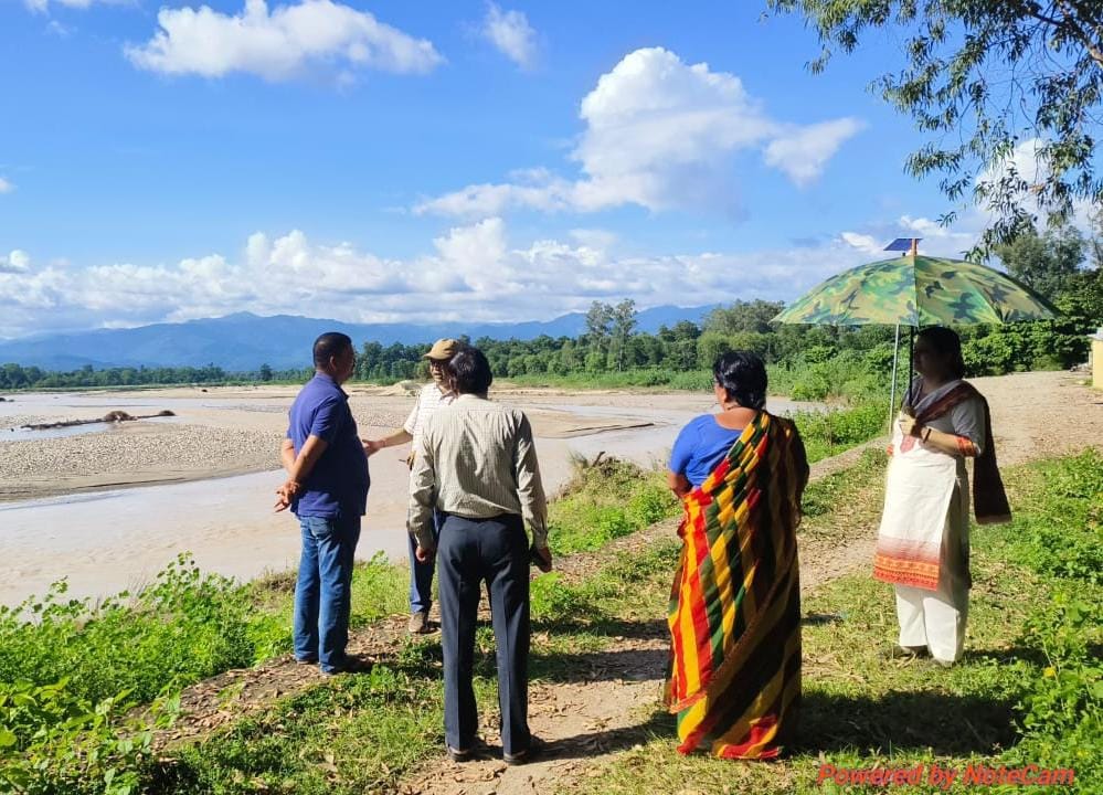 हुड्डी नदी से हो रहे भू कटाव को रोकने के लिए अधिकारियों ने किया निरीक्षण।