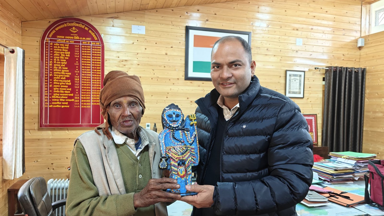 आज टीकाराम भट्ट द्वारा लकड़ी से निर्मित भगवान शिव की एक आकर्षक प्रतिमा जिलाधिकारी मनीष कुमार को भेंट की गई, जिसकी जिलाधिकारी ने भूरी-भूरी प्रशंसा करते हुए उनके समर्पण, कला-साधना एवं निरंतर सक्रियता को प्रेरणादायी बताया।