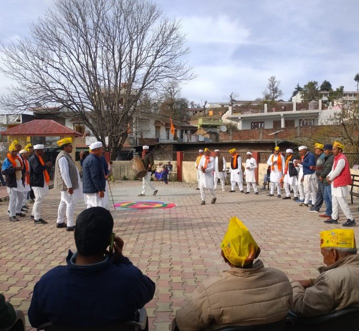 खेतीखान (चम्पावत ) – रंग भरी होली से आठ दिन पूर्व मनाए जाने वाले होलाष्टक के अवसर पर स्वतंत्रता सेनानी पार्क खेतीखान होलाष्टक महोत्सव का आयोजन किया गया । इस अवसर पर क्षेत्र के विभिन्न स्थानों से आये होल्यारों द्वारा खड़ी व बैठकी होली का गायन किया गया । होली समिति खेतीखान के तत्वावधान में आयोजित इस होली में विघ्न हरो तुम सगुन करो गौरी सुत गणपति.., दही मथले बिच कन्हैया… और राजा युधिष्ठिर तुम बैठो रथ में जैसी वेदांती, महाभारत ,रामायण, आधारित होली का गायन किया गया । होली समिति के अध्यक्ष गोपाल मनराल ने बताया कि समिति प्रतिवर्ष होलाष्टक महोत्सव पर खड़ी होली का गायन करती है । इसका उद्देश्य हमारी सांस्कृतिक विरासत को जीवंत रखना है। इस अवसर पर छत्तर सिंह मनराल, राजू बोहरा, कर्नल ज्ञान सिंह देउ, बद्री दत्त भट्ट, महेश जोशी , चतुर सिंह, विजय, ललित, कैलाश ,प्रकाश, किशन, नवीन ,खीमसिंह, मुकेश, दीपक सहित सैकड़ों लोग मौजूद रहे ।