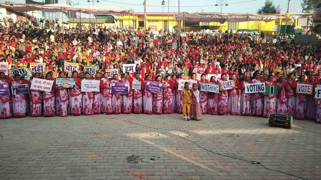 लोहाघाट ( चम्पावत) होली रंग महोत्सव के भीड़ भरे समारोह में भी लोकतंत्र की मजबूती के लिए दर्शक संकल्प लेना नही भूले । स्वीप कार्यक्रम की आइकॉन एवं बहुत कम उम्र में तिलु रौतेली पुरुस्कार से सम्मानित शाम्भवी मुरारी ने सभी को समवेत रूप से शपथ दिलाई । इससे पूर्व स्वीप के नोडल अधिकारी जीवन कलौनी ने लोगो को लोकतंत्र की मजबूती के लिए 19 अप्रैल को होने वाले लोकतंत्र के महापर्व में शामिल होकर शतप्रतिशत मतदान करने के लिए लोगो को प्रेरित किया ।इस अवसर पर सीडीओ संजय कुमार ने लोगों को होली पर्व की बधाई देते हुए मतदान के प्रति अपना लोकतांत्रिक धर्म निभाने के लिए जागरूक किया । महोत्सव आयोजन समिति की ओर से सीडीओ सहित सभी का पारंपरिक रूप से स्वागत किया ।