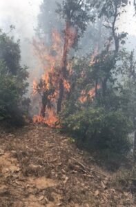 चंपावत/लोहाघाट। लोहाघाट नगर से लगे बनीगांव के जंगल में अराजक तत्वों ने आग लगा दी। जंगल में लगी भीषण आग से काफी वन संपदा जलकर राख हो गई। आग पर काबू पाने के लिए दमकल और वन कर्मियों को खूब मशक्कत करनी पड़ी। 16 मई की सुबह अराजक तत्वों ने बनीगांव के जंगल में आग लगा दी। देखते ही देखते आग ने विकराल रूप ले लिया और जंगल के काफी हिस्से को अपनी चपेट में ले लिया। जंगल में आग लगने से क्षेत्र में धुंए का गुबार फैल गया। कई घंटों तक जंगल धूं धूकर जलते रहे। जंगल में आग लगने की सूचना मिलने पर अग्रिशमन अधिकारी चंदन राम के दिशा निर्देशन पर दमकल कर्मी भैरव सिंह, पारस वर्मा, उमेश कुमार, नारायण बोरा ने मौके पर पहुंच कर लंबी मशक्कत के बाद आग पर काबू पाया जा सका। आग लगने से बांज, बुरांश, फल्यांठ, उतीश, चीड़ के छोटे छोटे पौधे जलकर राख हो गए। रेंजर दीप जोशी ने बताया कि आग लगाने वालों का पता लगा कर कार्रवाई की जाएगा।