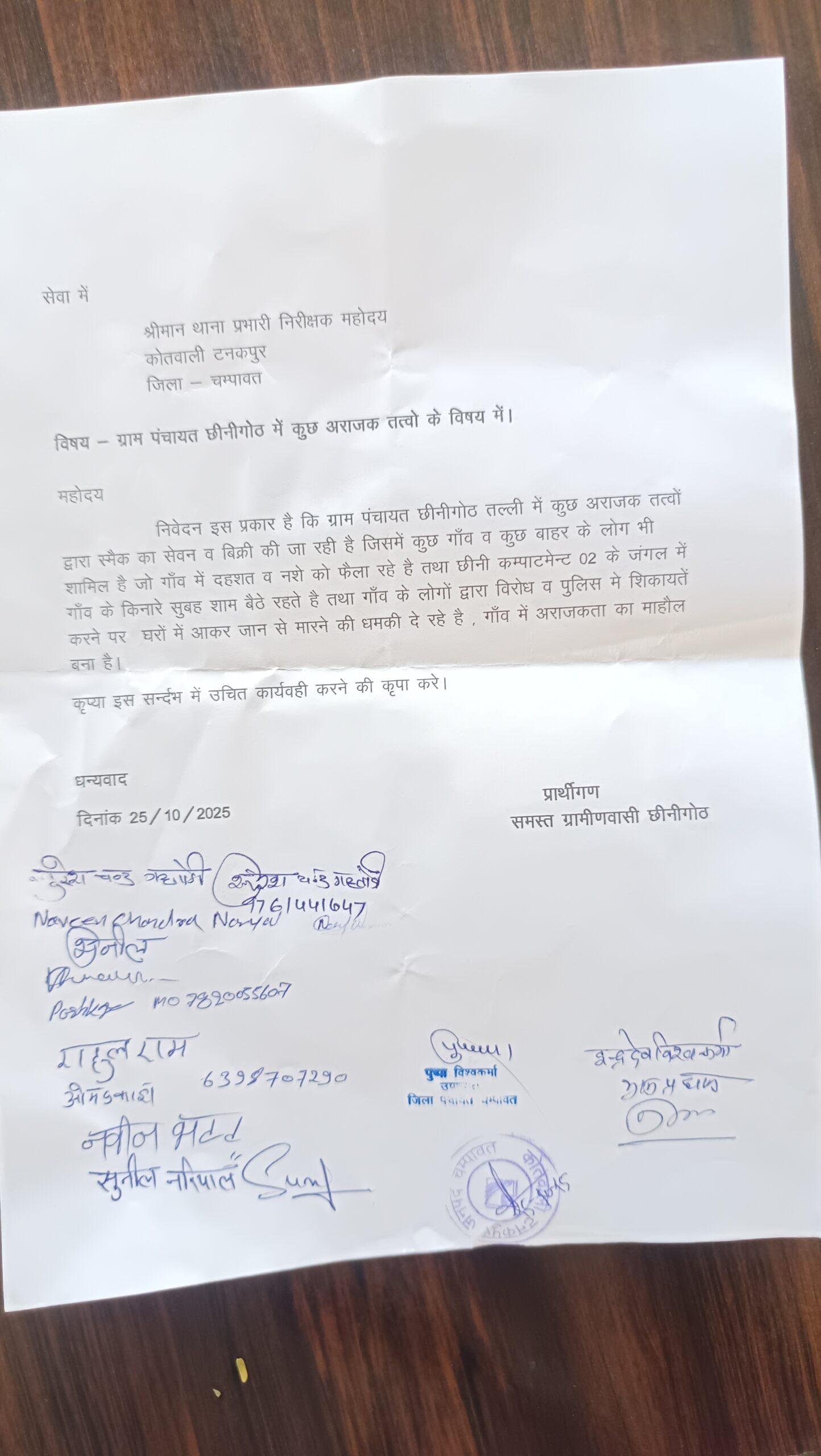 छीनीगोठ सहित ग्रामीण क्षेत्रो में फलफूल रहे स्मैक के धंधे को लेकर ग्रामीण मुखर । जनप्रतिनिधियों के नेतृत्व में ग्रामीणों ने कोतवाल को सौपा ज्ञापन ।
